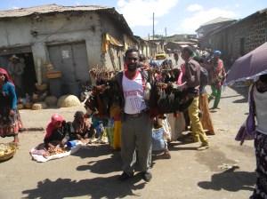 Chicken seller. Market. Gondar. Ethiopia